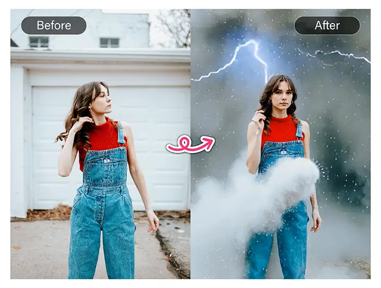 “Transform this daytime photo into a snowstorm scene. Add falling snowflakes, overcast lighting, soft shadows, and maintain the original subjects.”